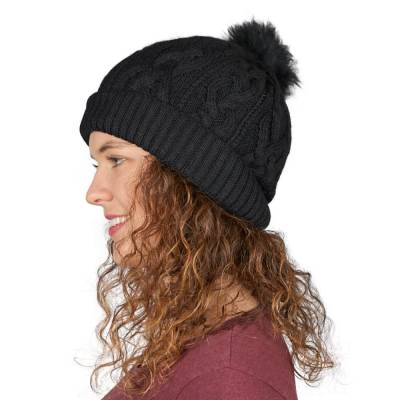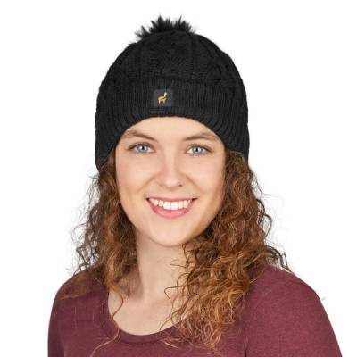 Dieses edle St?ck aus 100% Baby Alpaka ist ein echtes Kunstwerk. Die?Damen M?tze?ist der ideale Wegbegleiter f?r die kalten Tage. Die?M?tze?hat ein sehr sch?nes Zopfmuster und einen 11 cm breiten?Bommel.